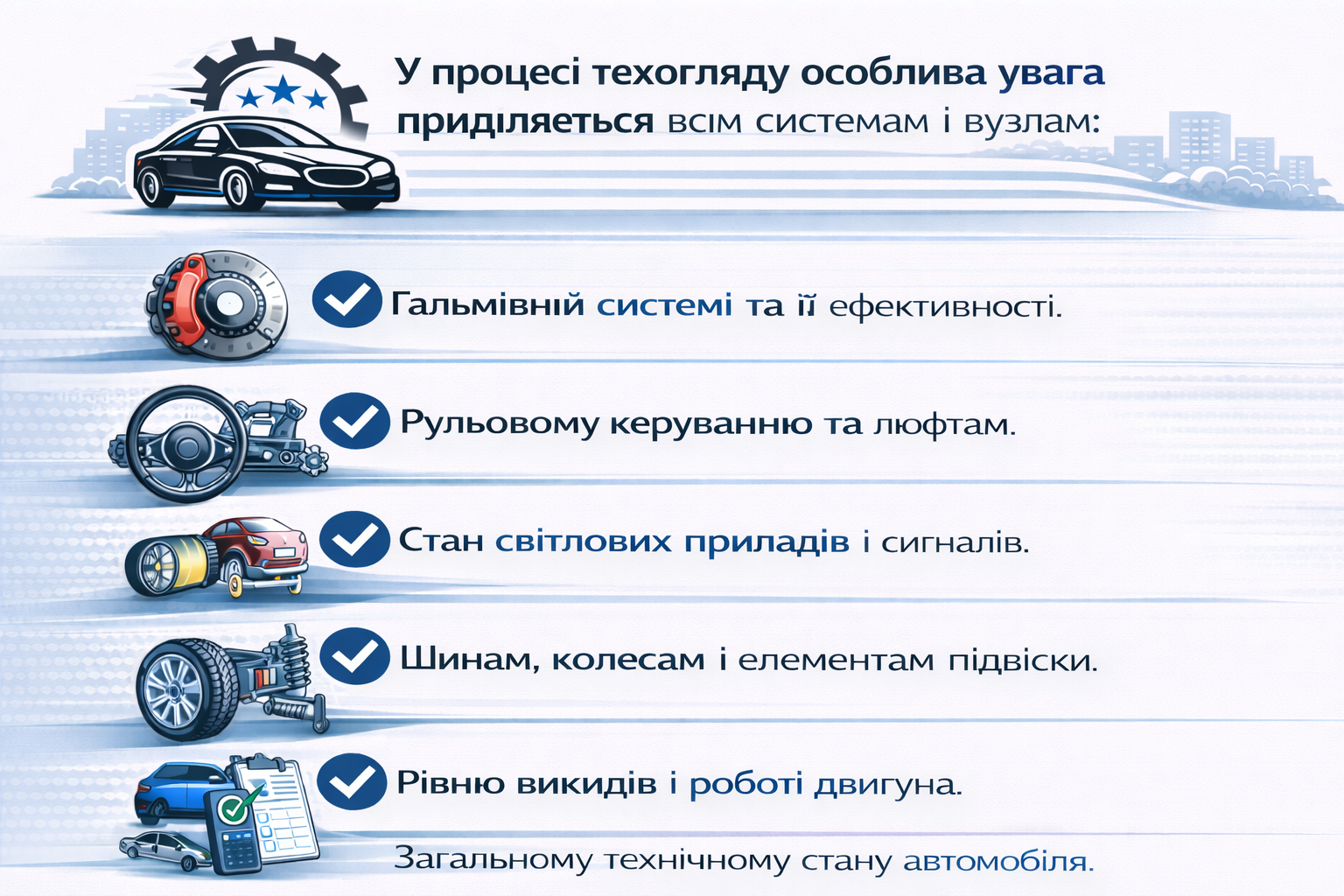 Такий підхід дозволяє отримати об'єктивну картину стану авто і зрозуміти, чи готове воно до експлуатації без ризику і порушень.